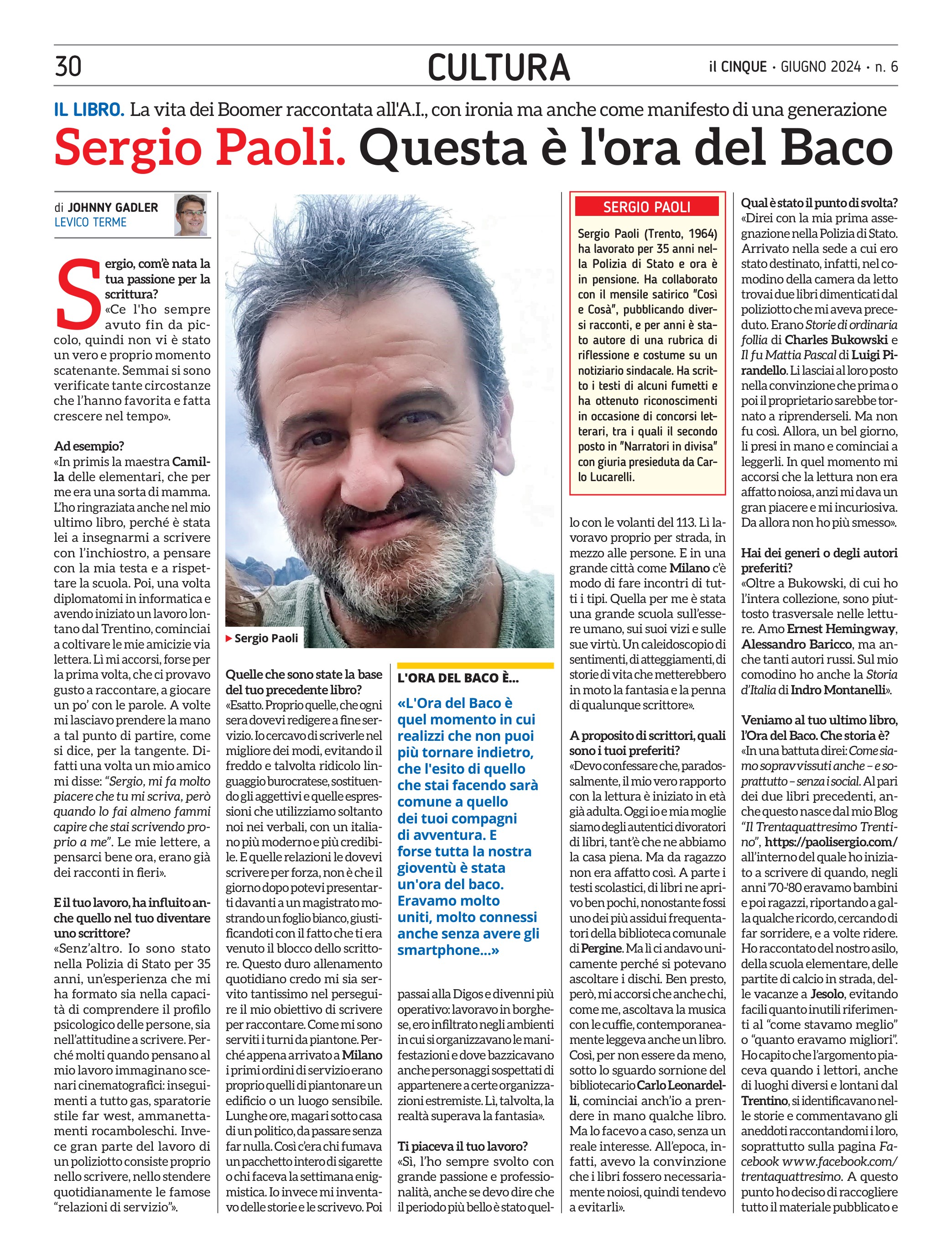 Il Trentaquattresimo Trentino è l’autore de L’ORA DEL BACO.